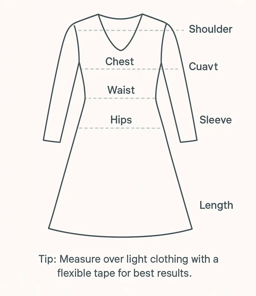 If your measurements don’t match exactly, don’t worry — most of our dresses include an adjustable waist belt for flexibility. You can also request a custom size by adding a note at checkout or contacting us directly.